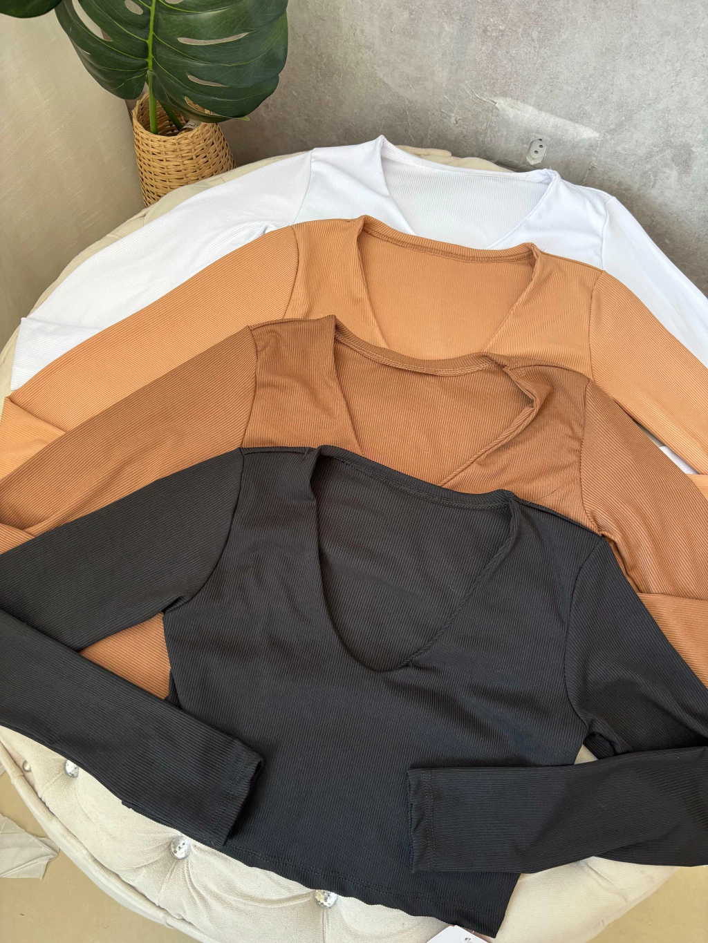 Cropped de Frio Canelado – Manga Longa Gola em V